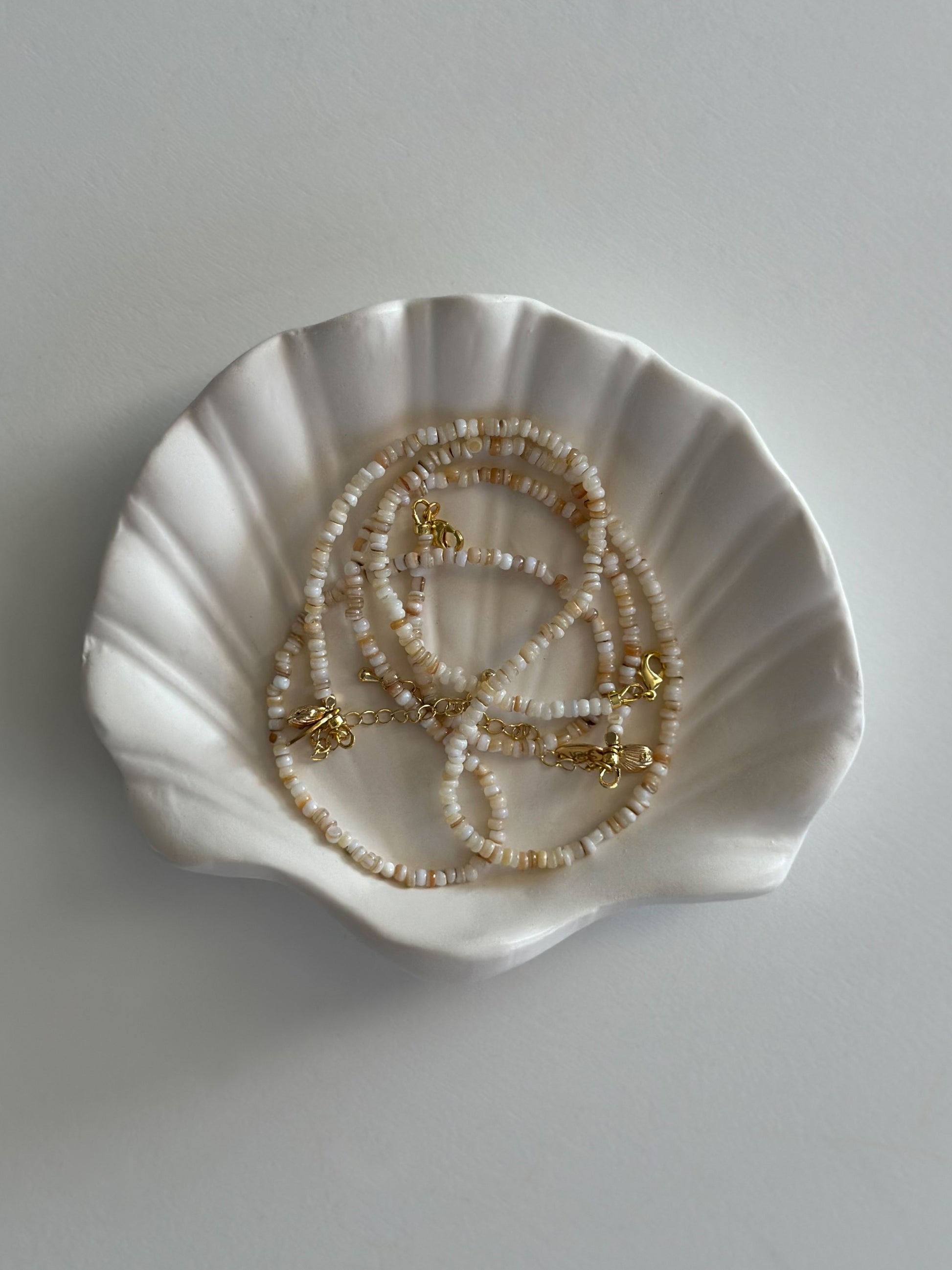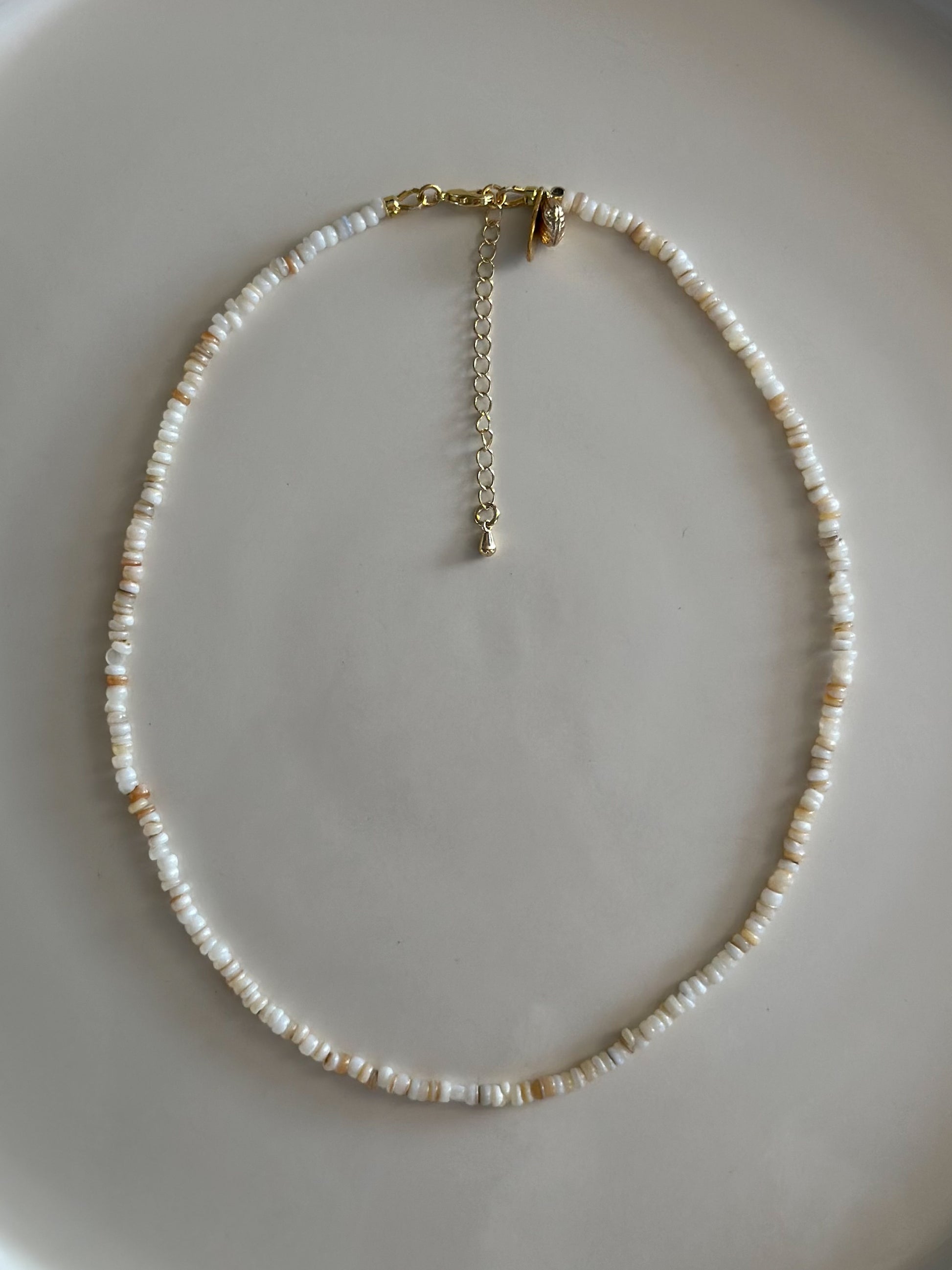 Materials: shells, gold plated tag and clasp